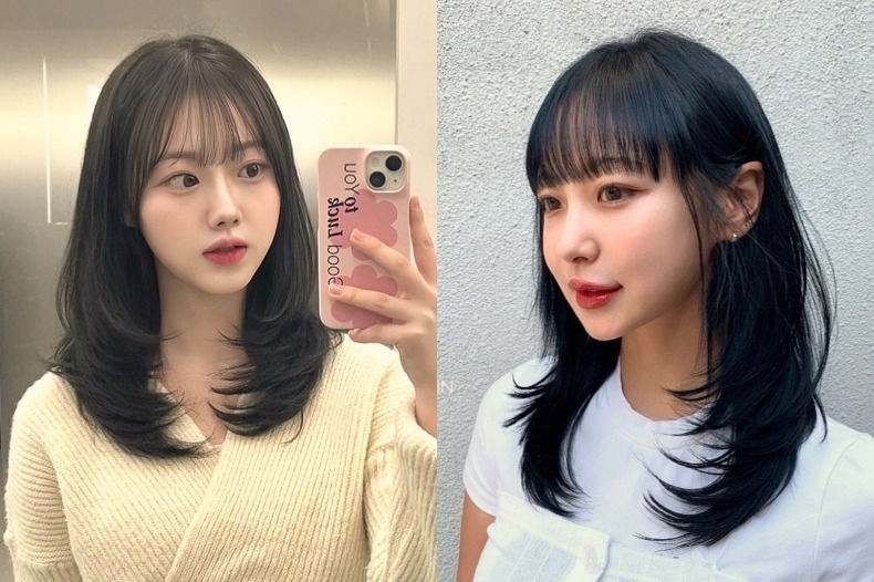 Kiểu tóc này có phần đuôi được tỉa layer, uốn cong nhẹ ôm vào mặt. Đuôi tóc tỉa mỏng tạo vẻ tự nhiên, thanh thoát như lông vũ. Với độ dài lý tưởng qua vai một chút, các layer tóc trông sẽ hài hòa hơn. Tùy theo dáng mặt, có thể kết hợp với tóc mái thưa, tóc mái bay… để mái gương mặt thêm hài hào, trẻ trung.